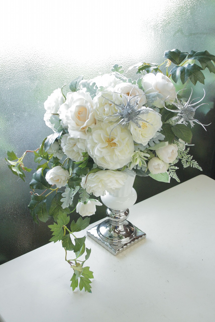 アレンジメントは宅配用のBOXにしっかりと固定するため、ラッピングは控えさせていただいております。